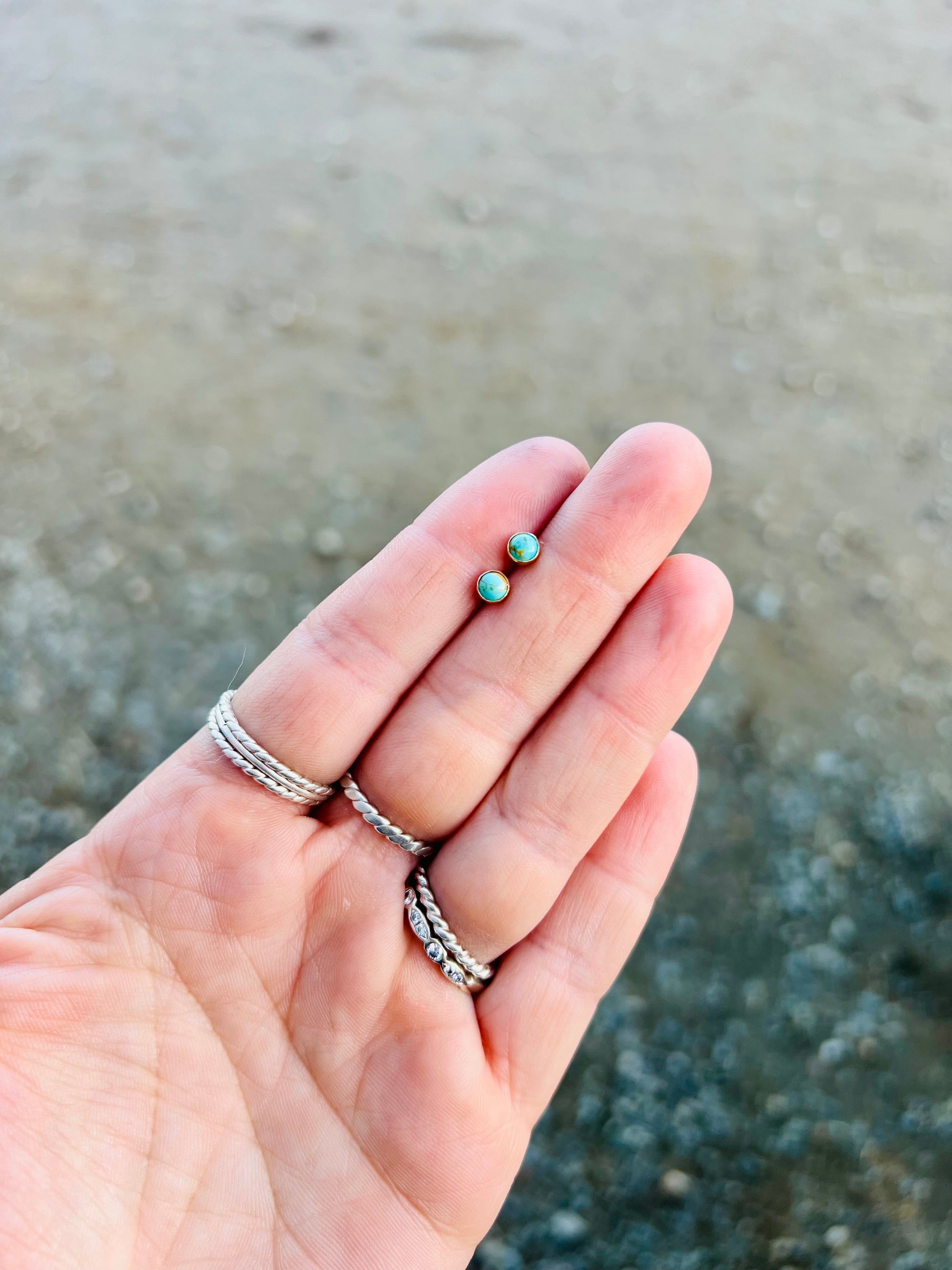 This listing is for the 4mm post earrings. Due to the unique nature of turquoise, please keep in mind color may differ slightly. As always, handmade by Tiana.
